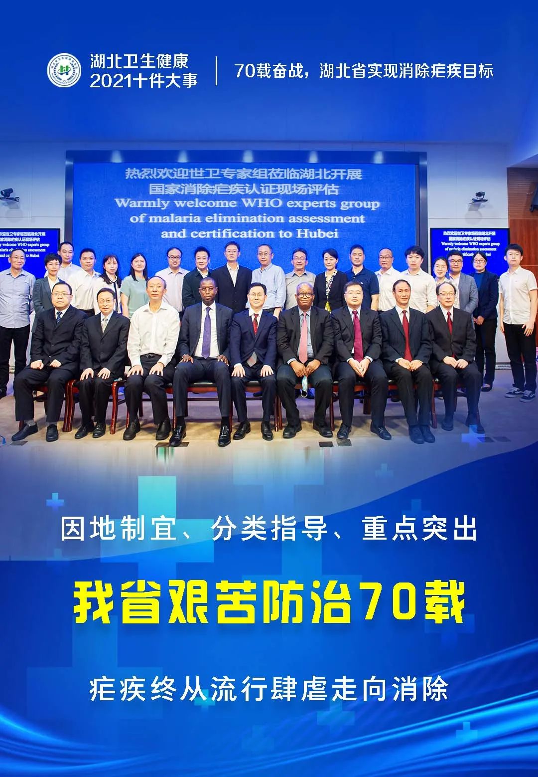2021年5月,湖北省代表中国接受世界卫生组织消除疟疾独立认证评估,6月,世界卫生组织宣布中国通过消除疟疾认证。这是我省公共卫生领域取得的又一伟大成就。