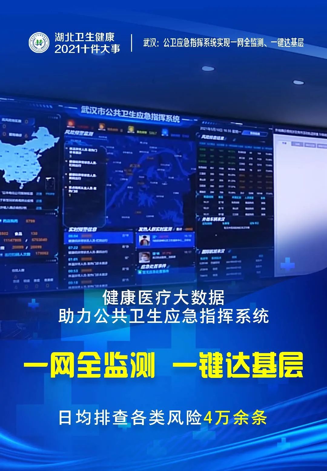 武汉市着力构建健康医疗大数据应用新格局,建设公共卫生应急指挥系统,与国家、省、市47个系统实现数据互通,实现数据“同城同管”,实现了多点触发、智能预警一网全监测,应急处置、指挥调度一键达基层,成为常态化疫情联防联控的工作平台,并覆盖所有突发公共卫生事件。