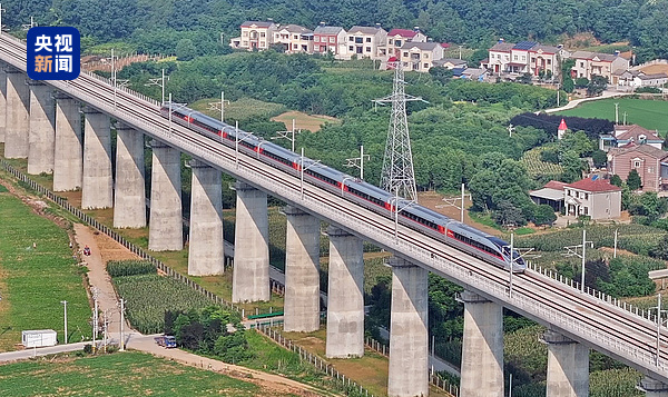 △2025年6月12日,全球最快高铁CR450动车组在湖北开启为期约半个月的型式试验。