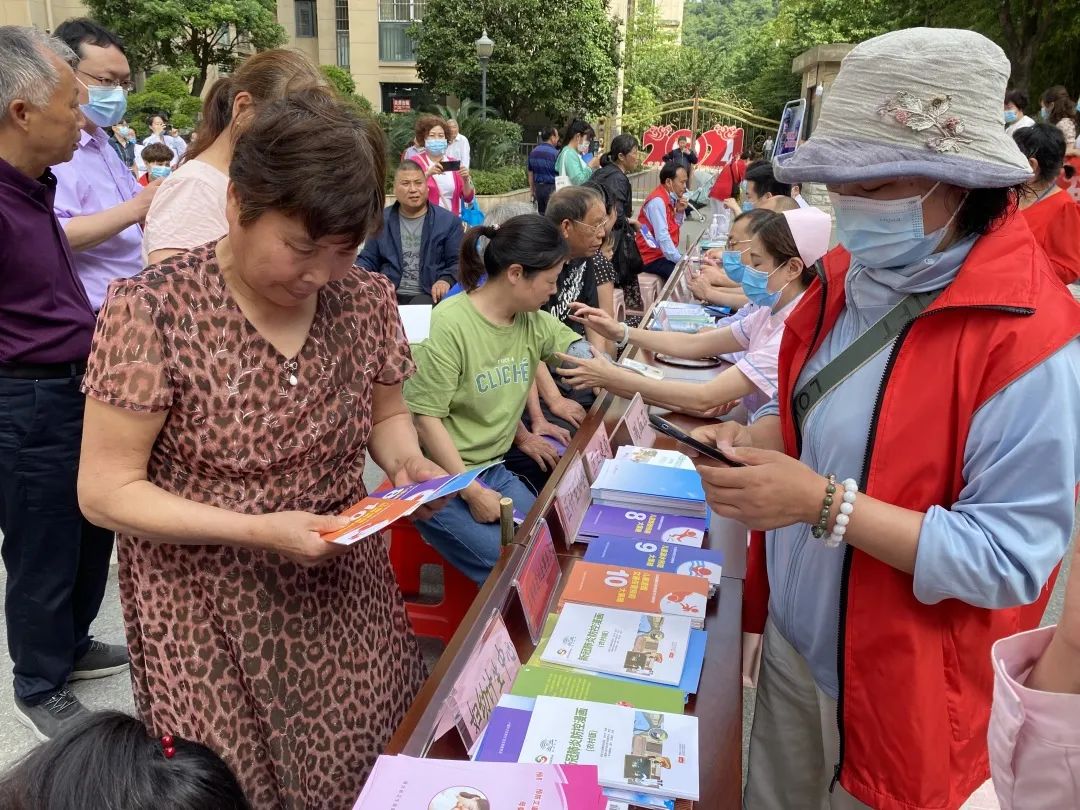活动现场,摆放了七块宣传展板,分别介绍了计生协会性质、宗旨、工作任务、服务方式及“六项重要任务”和湖北省计划生育条例解答等内容,区、街办、社区三级计生协志愿者还向市民免费发放《防止儿童发生溺水、交通伤害等意外的宣传折页》、《健康素养 66 条》、《新冠肺炎疫情防控漫画》等资料,设立生育政策、优生优育指导、生殖健康咨询台,向过往群众讲解政策法规、普及健康知识、回复健康咨询。