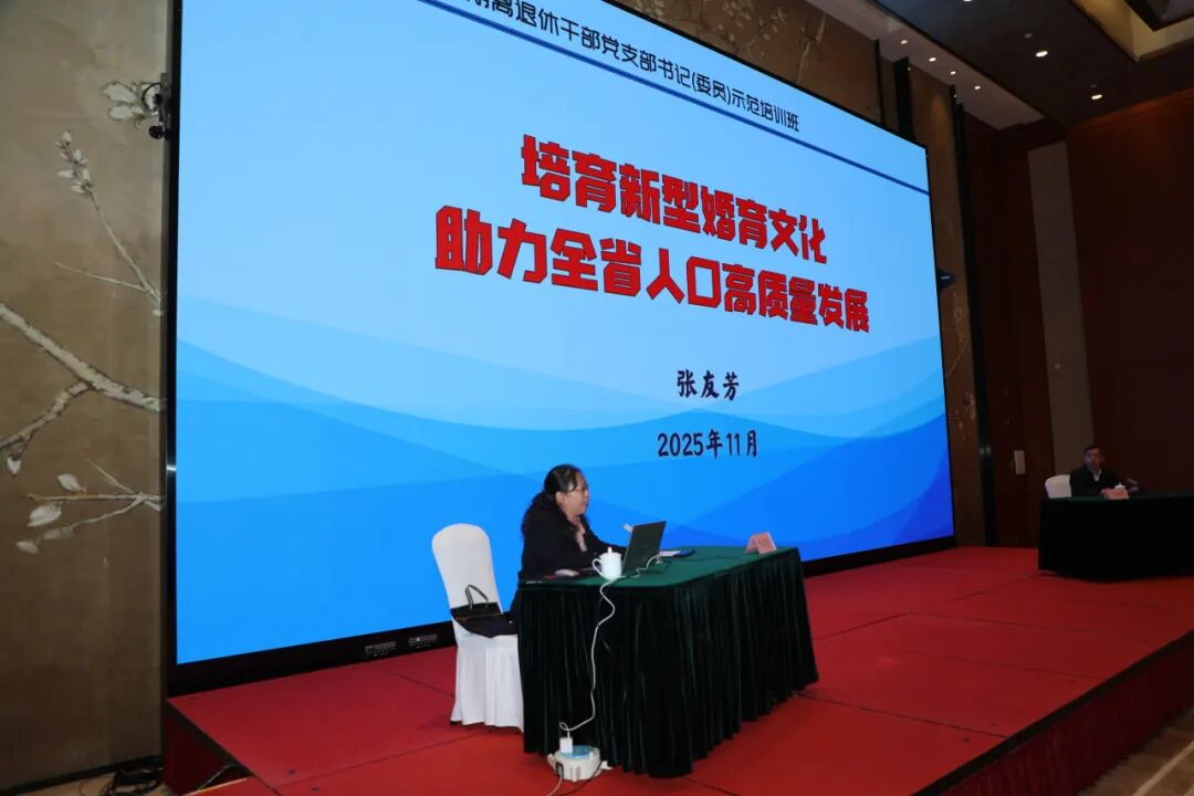 11月20日,省卫生健康委一级巡视员张友芳应邀在省委老干部局省直第二十七期离退休干部党支部书记(委员)培训班上,以“培育新型婚育文化 助力湖北人口高质量发展”为题进行了专题授课,分享了计生协会在推进新型婚育文化建设中的实践探索。