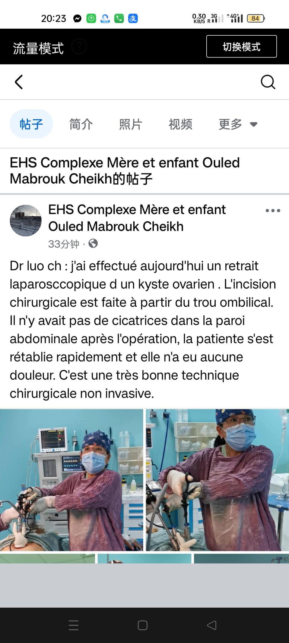 近日,中国第28批援阿尔及利亚医疗队地亚雷特分队在阿尔及利亚地亚雷特省级医院成功完成该省首例单孔腹腔镜下巨大卵巢囊肿剥除术。这一高难度微创手术的成功实施,标志着该省妇科微创技术迈入新阶段,也为中阿医疗卫生合作再添里程碑式成果。