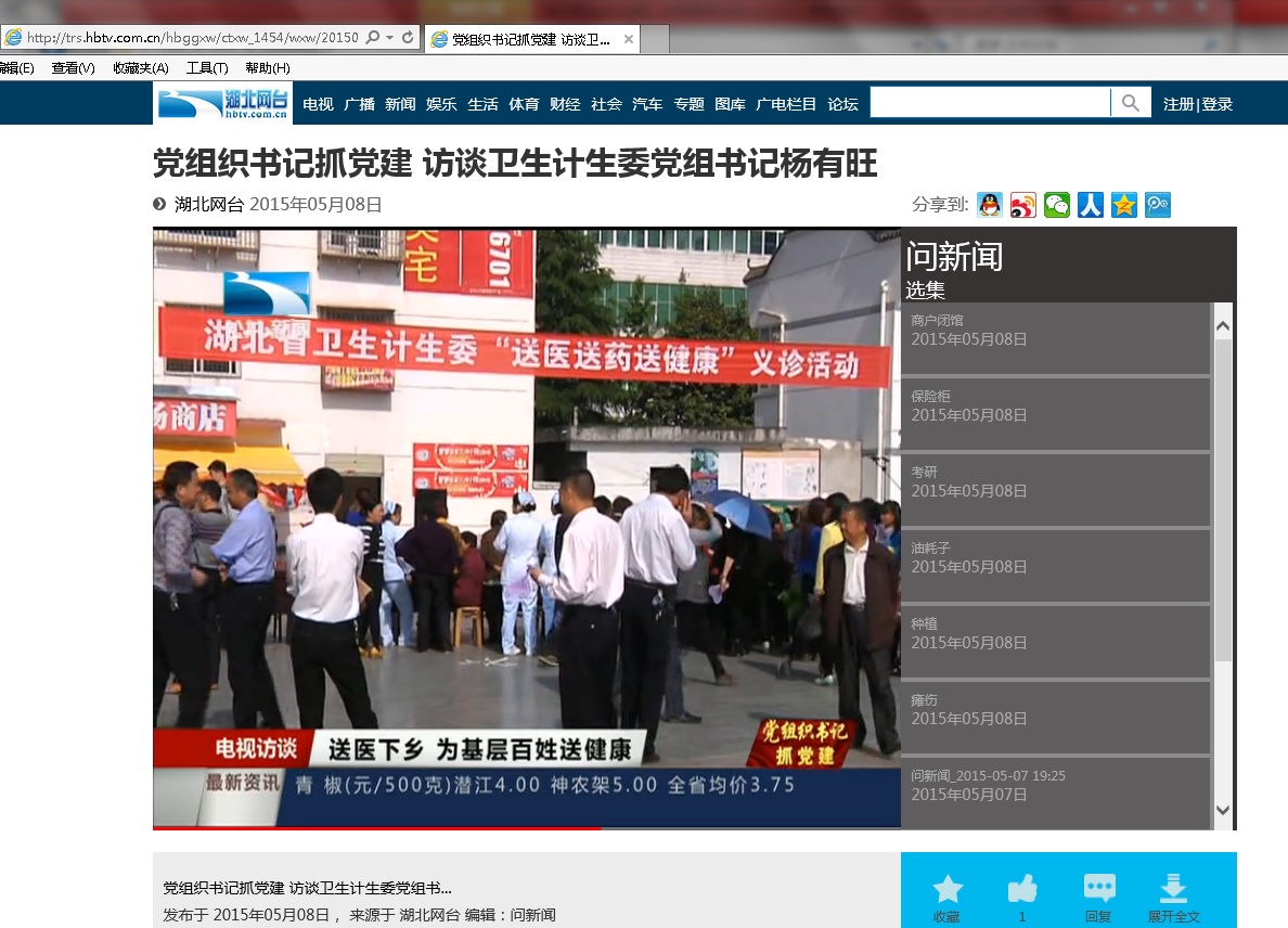 湖北电视台新闻频道:党组织书记抓党建 访谈卫生计生委党组书记杨有旺