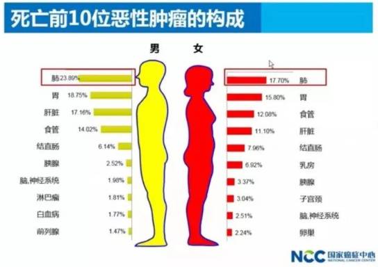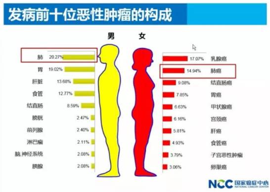 ◆中国肺癌男性发病率中居首位,女性发病率中居第二位。