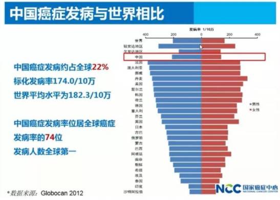 ◆由于中国癌谱与美国不同,以及就诊普遍偏晚,导致中国癌症死亡率高于全球平均水平。