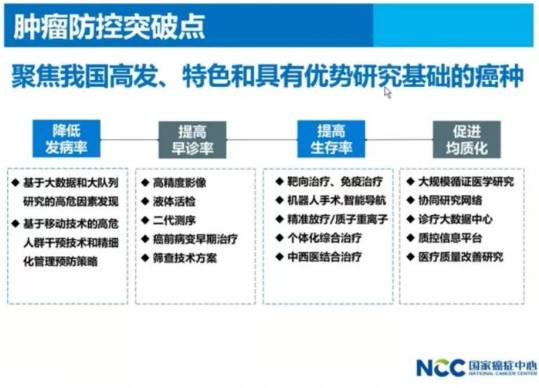 ◆降低发病率、提高早诊率、提高生存率、促进均质化是我国肿瘤防控的突破点。
