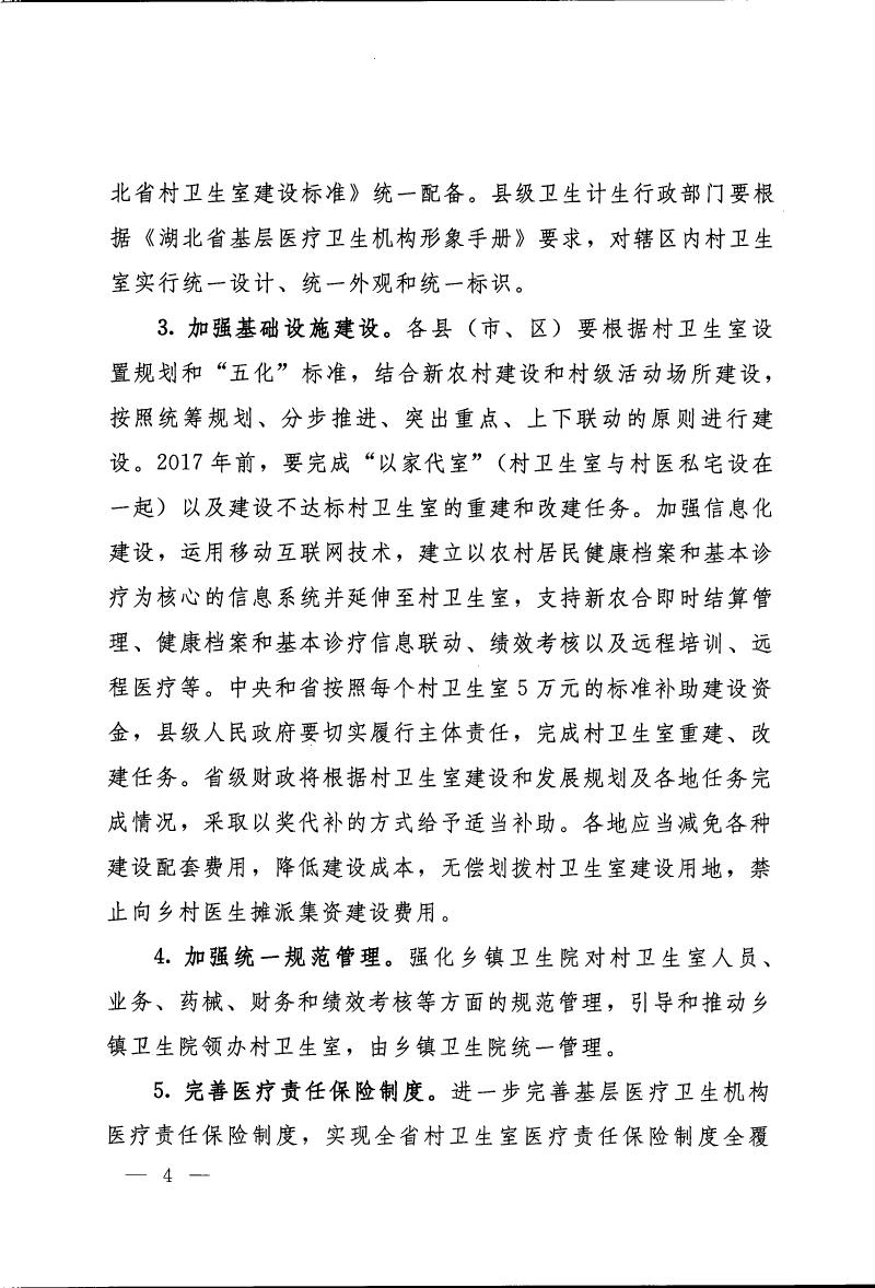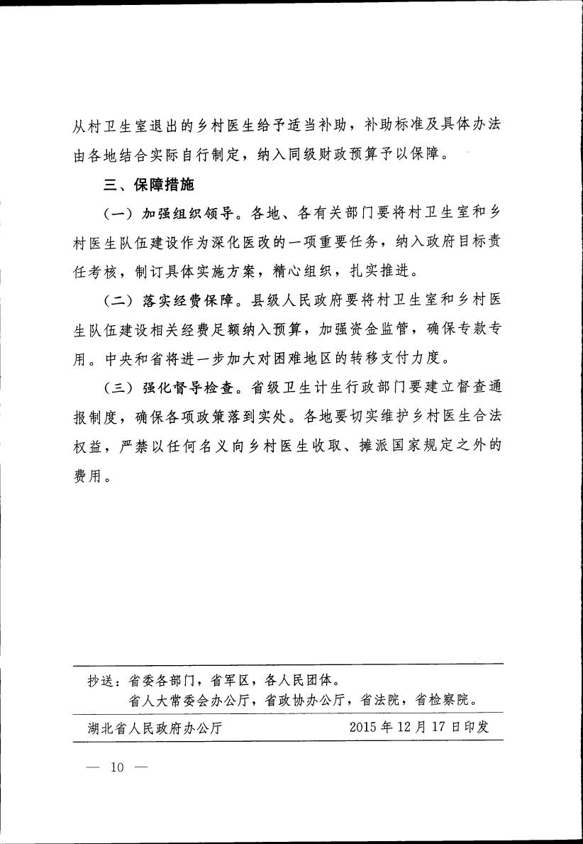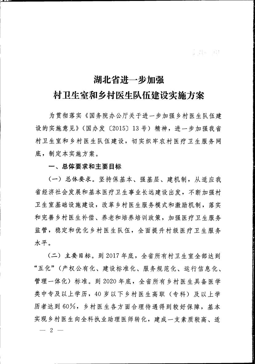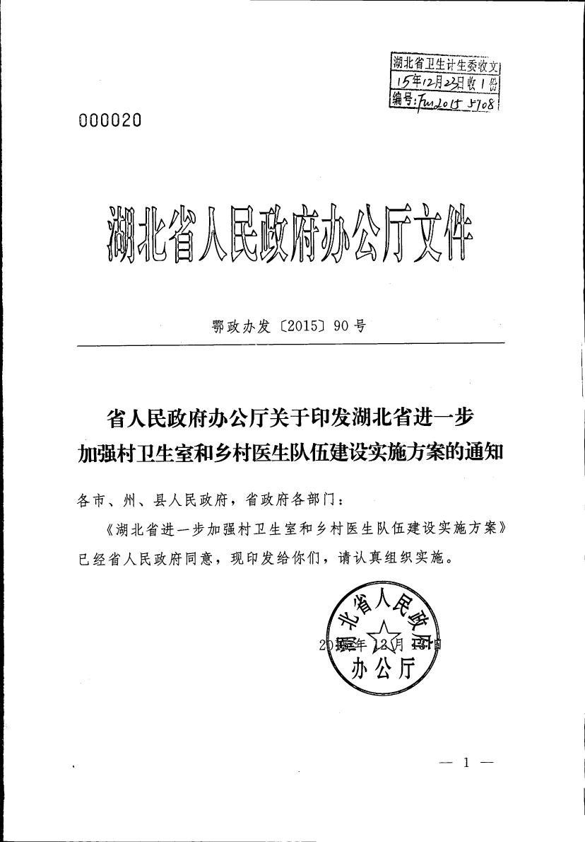 省人民政府办公厅关于印发湖北省进一步加强村卫生室和乡村医生队伍建设实施方案的通知(鄂政办发[2015]90)号