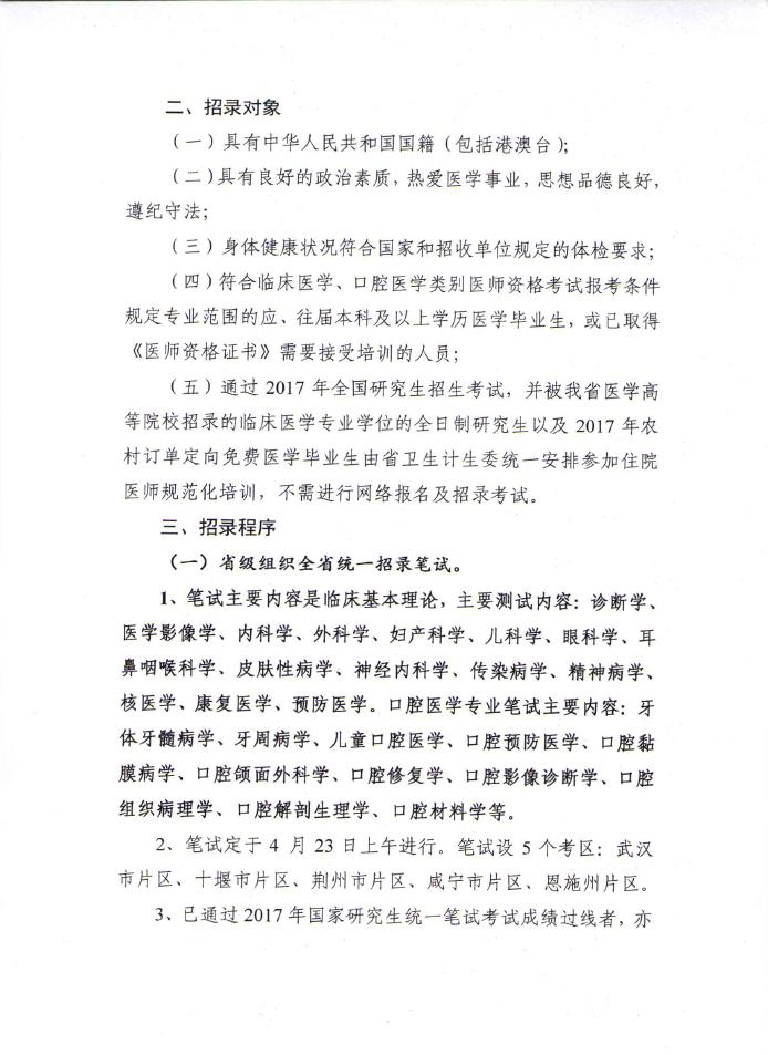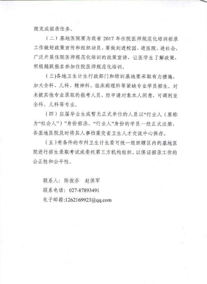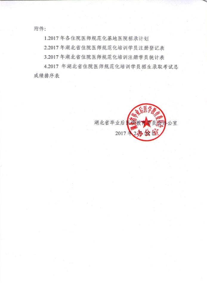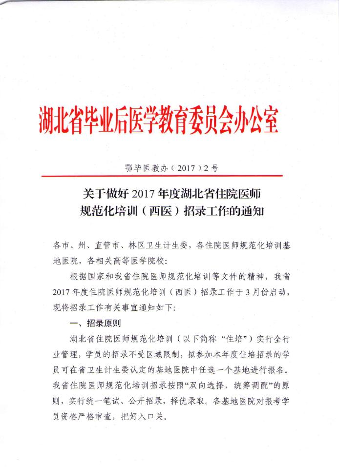 关于做好2017年全省住院医师规范化培训(西医)招录工作的通知(鄂毕医教办〔2017〕2号)
