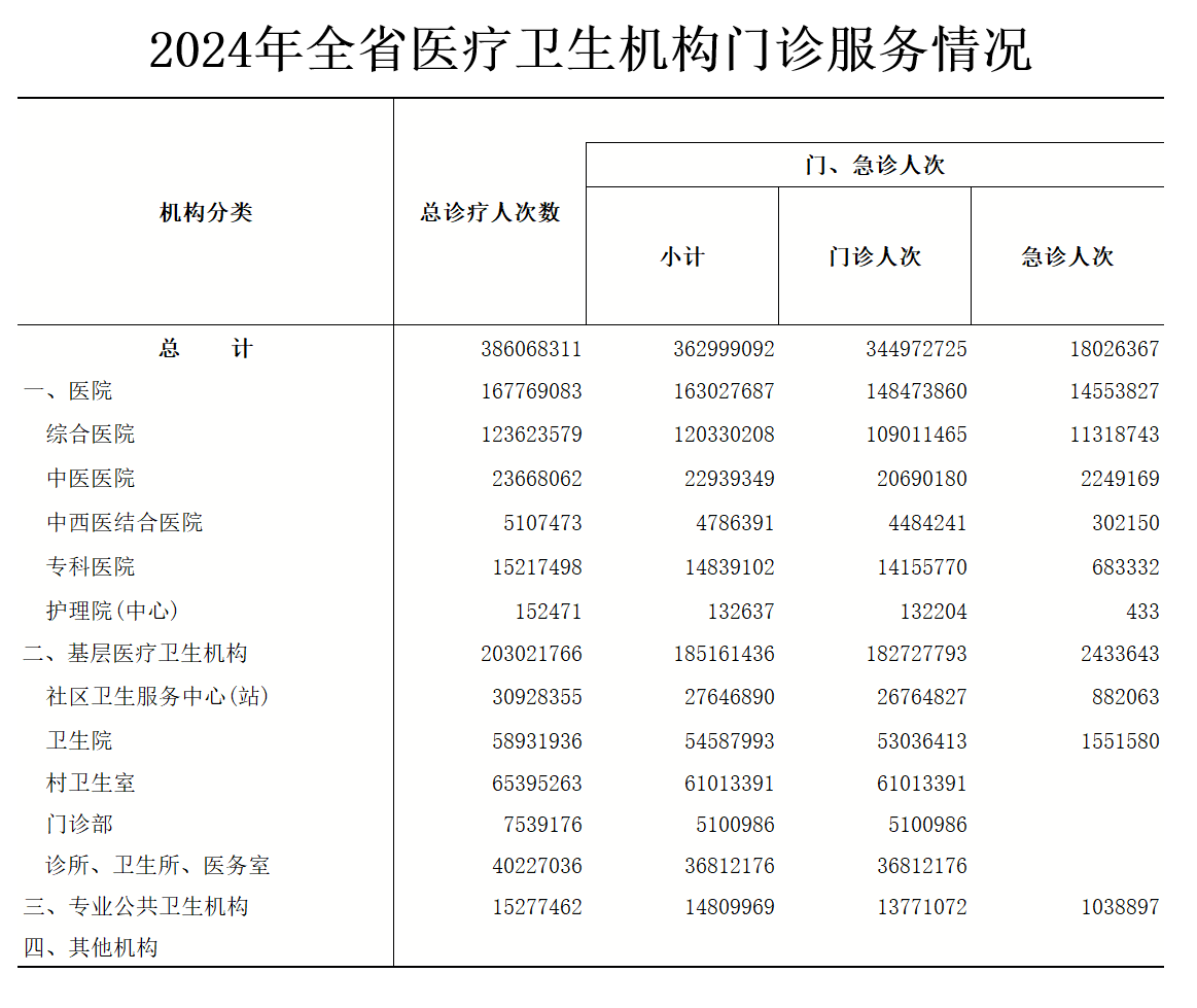 2024年全省医疗卫生机构门诊服务情况