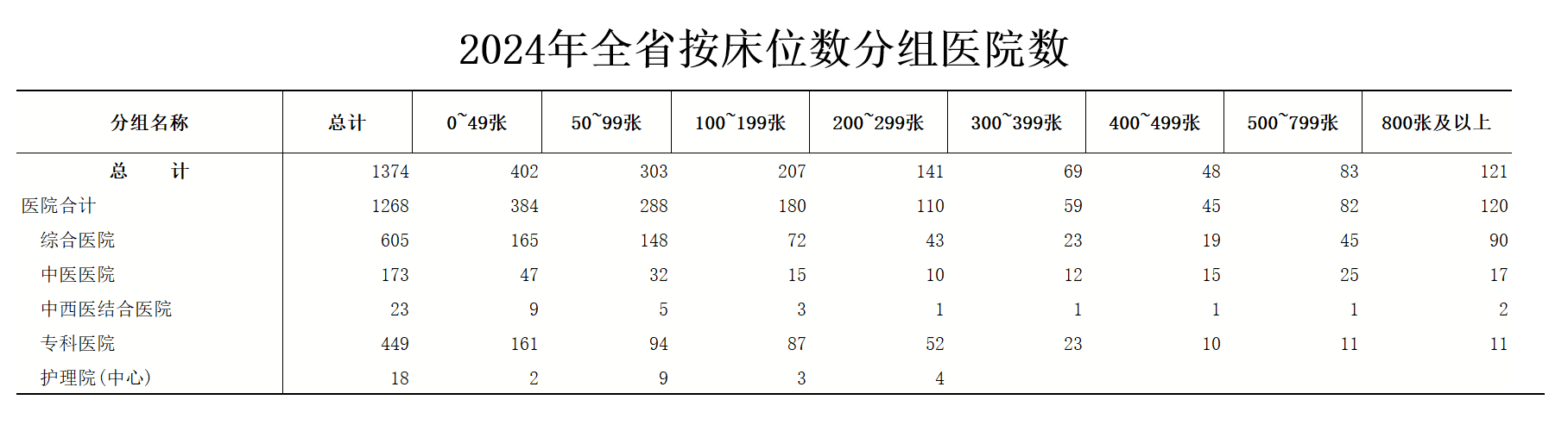 2024年全省按床位数分组医院数