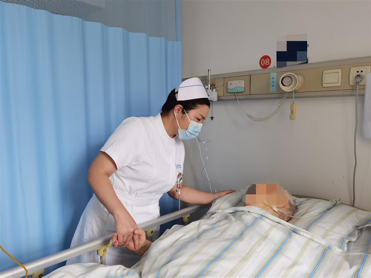 除了不间断地帮助章婆婆翻身,张立每次床边护理时,虽然章婆婆不能言语,她都会不停地和章婆婆交流,鼻饲时握着她的手问:“您饿不饿啊?”,翻身时握着她的手鼓励:“您用一下劲!”。一个多月的护理后,张立欣喜地发现,章婆婆不仅身上的压疮得到了恢复,每次与她交流时,她还能简单地通过发出微弱的声音给予回应,翻身时她的胳膊也在努力配合着使劲,章婆婆一点一滴的进步让张立和团队信心倍增。