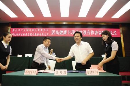 月13日下午,荆州市举行居民健康卡建设工作会议暨合作协议签订仪式,市卫生和计划生育委员会与荆州农商银行签订了居民健康卡项目建设合作协议。荆州将全面推广“居民健康卡”,并力争今年底覆盖全市75%的县(市、区),明年实现全覆盖。
