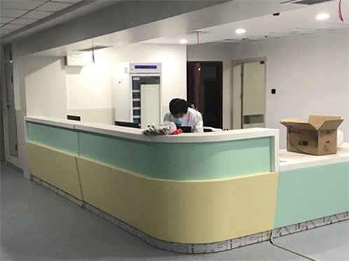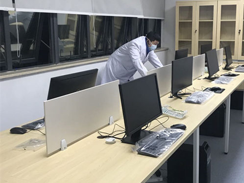 接到命令后,我科立马组织人员进行方案商讨,工作分配。由于两院之间相隔2公里陈秋香院长和电信公司协商后由电信公司提供直通网络支持,将我院与应急医院南楼网络进行直连,在尽量不影响应急医院现有网络结构的情况下,将整个南楼网络作为子网接入我院网络。同时根据应急医院需要,在各软件系统中设置新设病区并进行初始化配置。网络和软件配置完成后连夜组织人员携设备赶赴现场安进行安装。经过全科室48小时奋战,在2月11号下午完成所有网络、软件部署,新病区信息系统顺利投入使用。