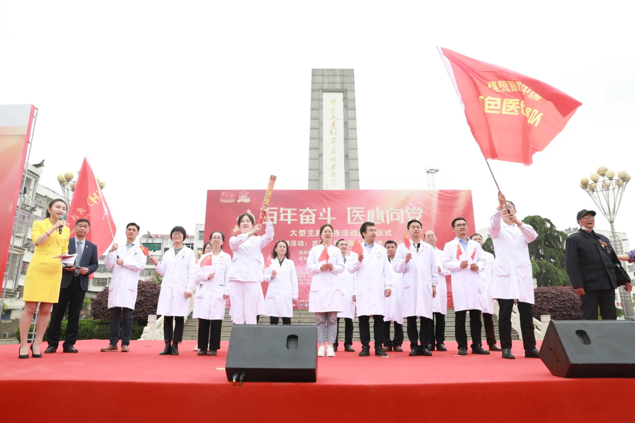 走进老区送健康。4月23日上午,“百年奋斗 医心向党—湖北百医基层行”首场活动在红安县七里坪镇红军广场拉开帷幕。湖北省抗疫先进个人、武汉大学中南医院党委书记、武汉雷神山医院副院长袁玉峰带领专家团队,与老区人民一同开展党史教育活动,并联合当地医疗团队为七里坪的乡亲们开展义诊,发放免费药品,还为需要帮扶的老革命及家属捐赠30万元专项扶助基金。5至8月,还将组织同济医院、协和医院、武汉大学人民医院、省中医院、省第三人民医院、省中西医结合医院、省肿瘤医院、省妇幼保健院、天佑医院、亚洲心脏病医院等十余家医疗机构分批走进基层,为百姓送健康,用实际行动展示我省医务工作者学党史、悟思想、办实事、开新局的生动实践。